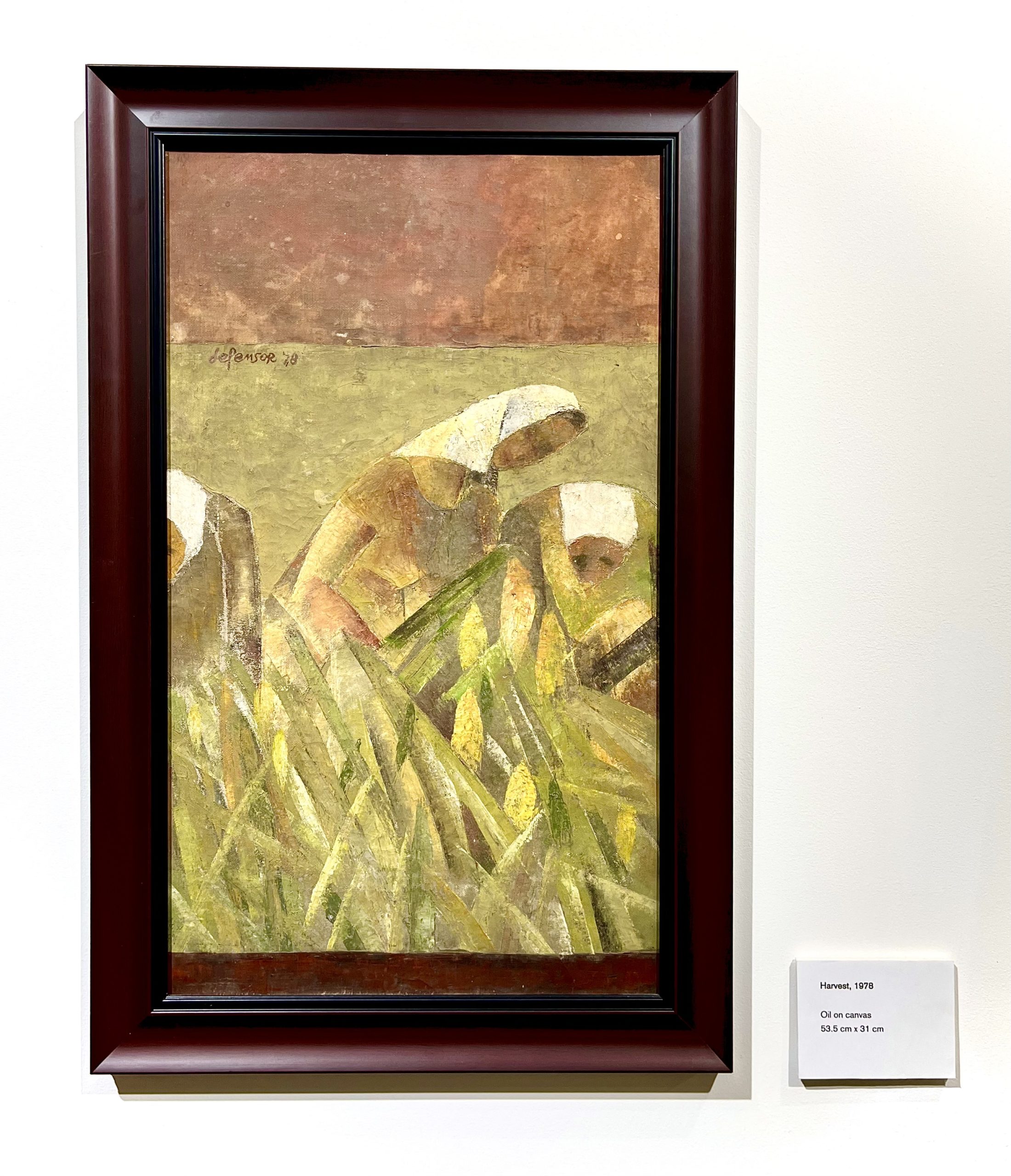 The collection at the quaint, intimate, and almost a meditative space sums up a portion of his life as an artist, 45 years to backtrack from the present to his oldest work on display dated 1977 – Two Peasants, a work cohabiting with the most recent, a 2021 masterpiece – Manature Series, Opus 295.