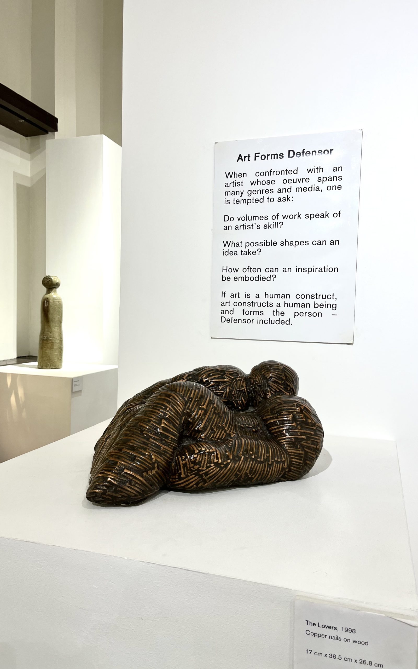 His sculptures on display are something to behold. The wood sculptures were dressed up in copper nails, bent to the shape of the three-dimensional carving, making an impression that it is entirely made of copper at a glance. Three of the Coppernail Sculptures that he preserved: Dancer VI (1998), The Lovers (1998), and Fire Dance II (1999) are part of the collection.