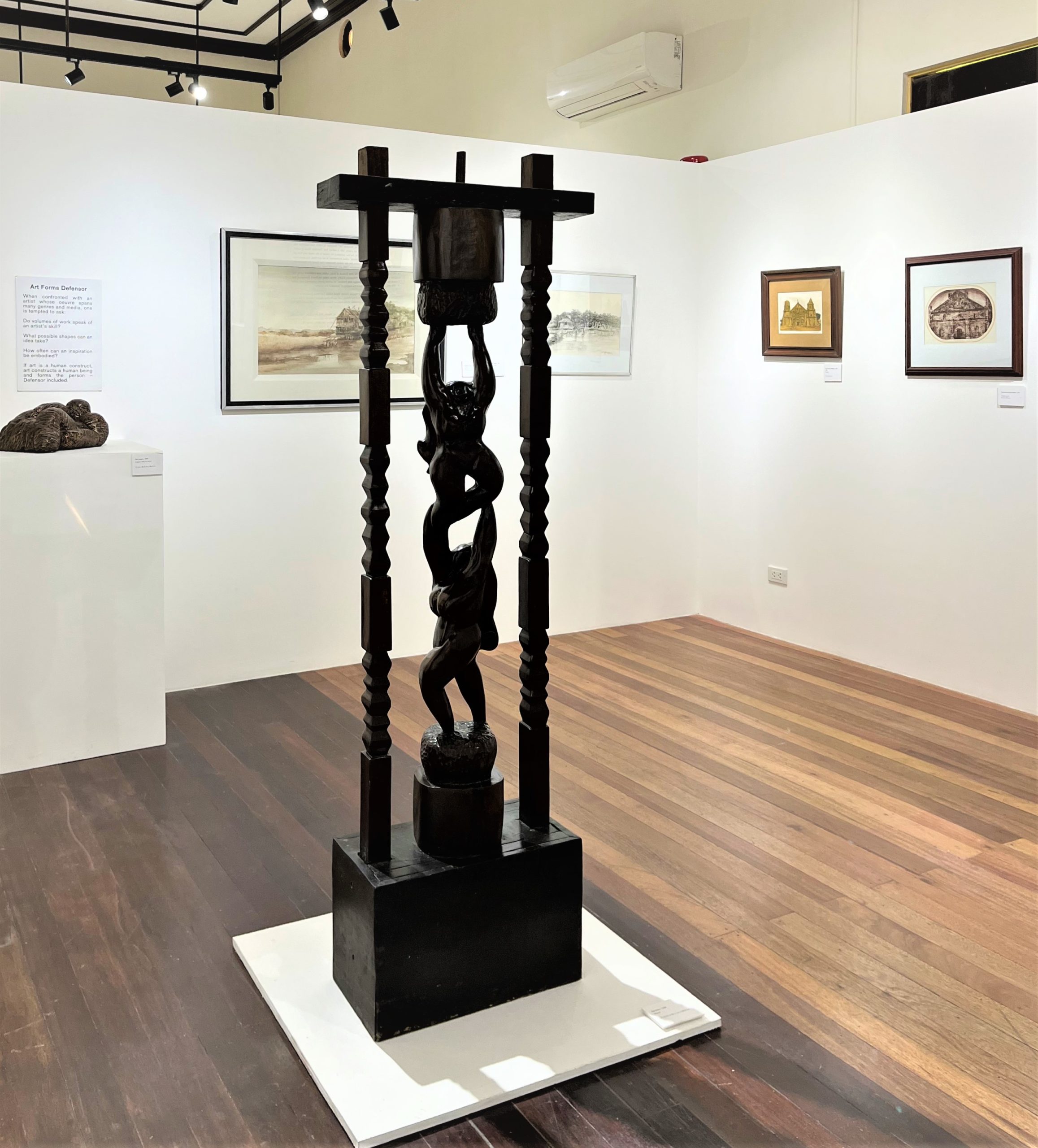 At the center of the gallery is a 171.5 cm x 56.1 cm x 25.5 cm Wood sculpture, entitled: Dancers (1998). Looking closely at his sculptures is like opening another chapter of the book. These were entirely different subject to dive in and you will see the remarkable application of various techniques that you have learned in Humanities 101 subject.