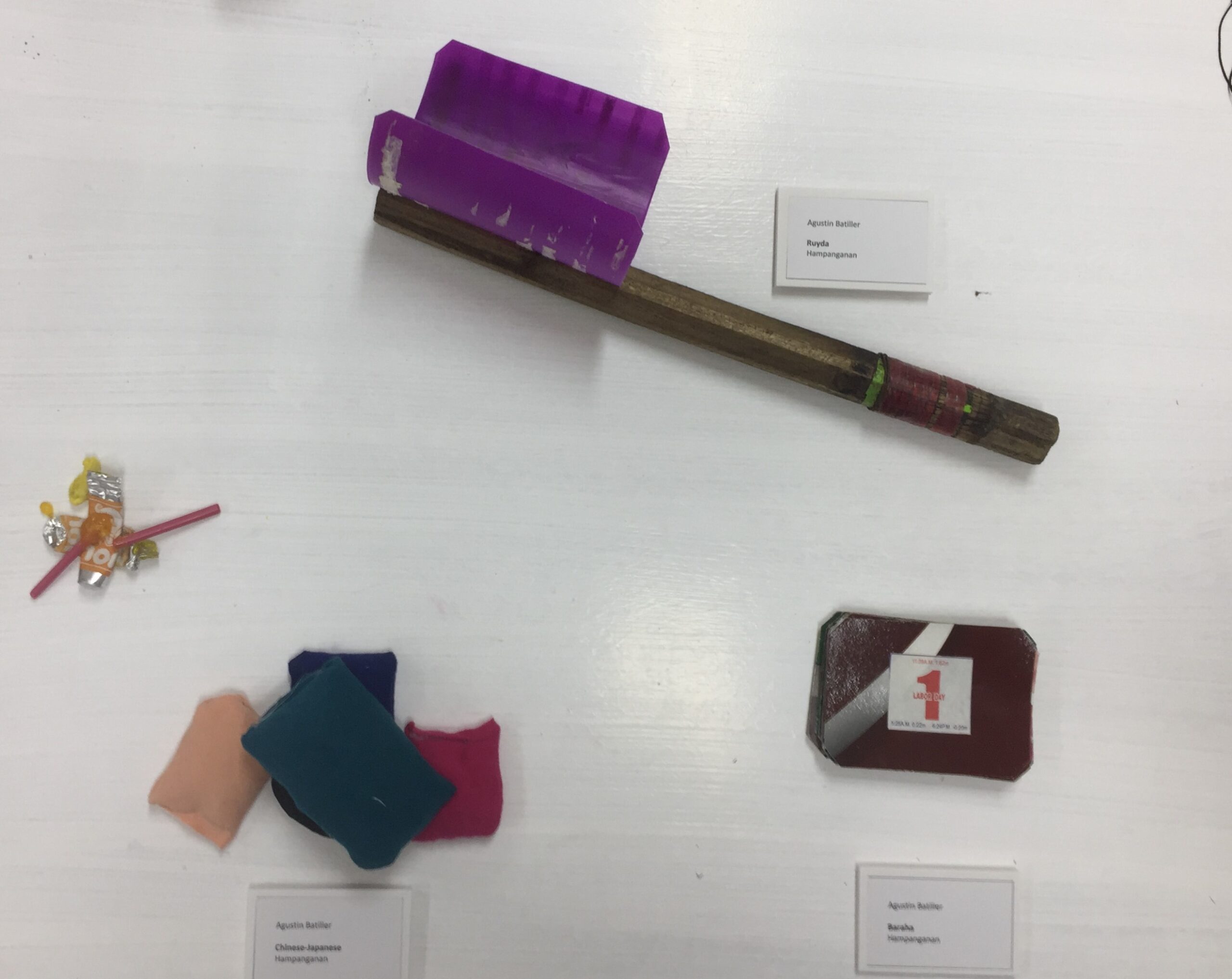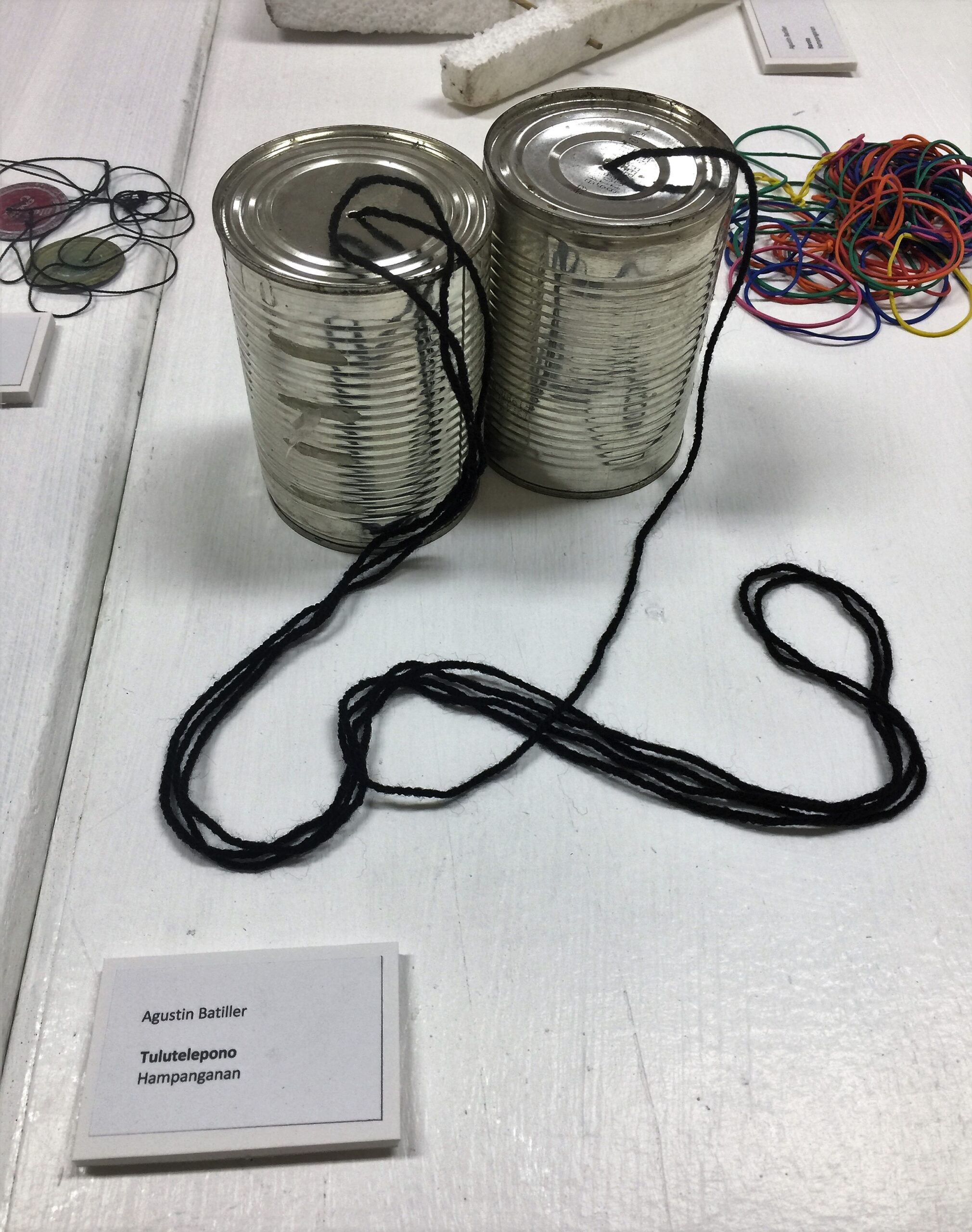 The toys exhibited at the table were works by Agustin Batiller, a friend by the artists whom they fondly call by his nickname, Tikô. His pieces, Tarak-tarak, Tulutelepono, Pitiw, and Tirador, among other toys once popular with children brought viewers down memory lane.