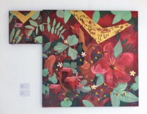 Bringing up the childlike spirit to the exhibit is Jecko Magallon. His collage and mural work typified playfulness exemplified by bright shades to highlight characters and vibrant hues to render joyous shapes.