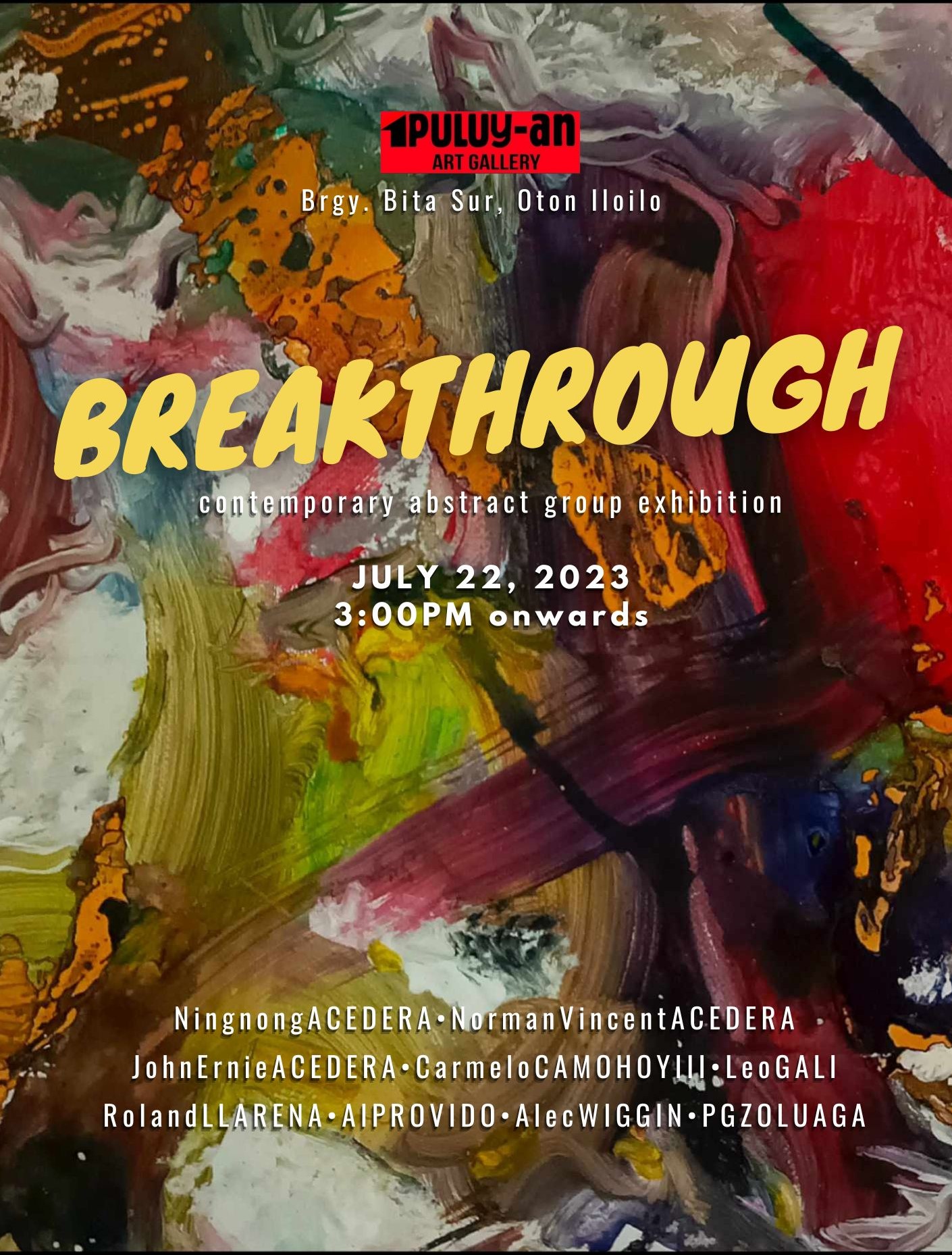 Breakthrough featured the works of the Acedera brothers, Ningnong, John Ernie, and Norman Vincent, together with those of Carmelo Camohoy III, Leo Gali, Roland Llarena, Al Provido, Allec Wiggin, and PG Zoluaga.