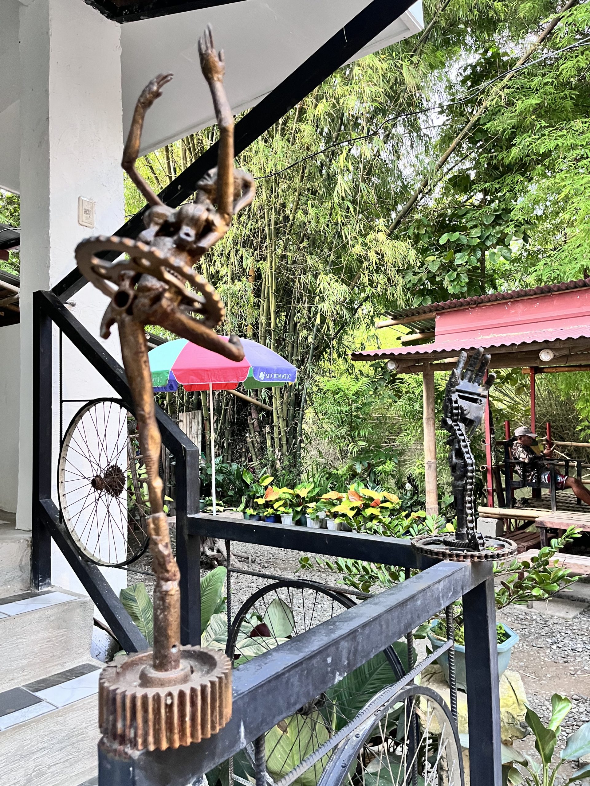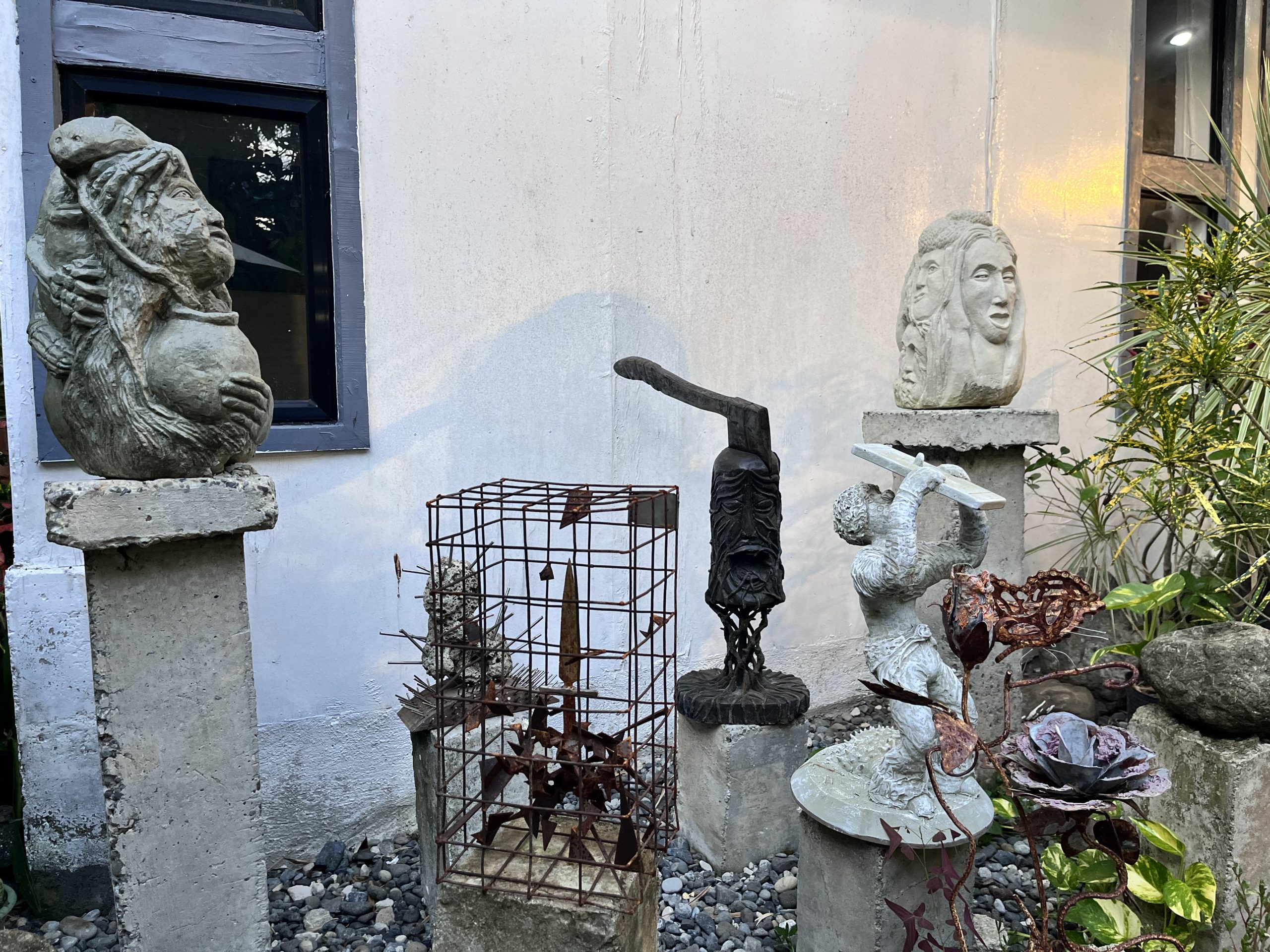 The two sculptural works at the entrance door with a carabao head represent the hardworking Guirhem couple, comparable to a carabao (water bufallo), with Melvin as artist-father and Recheal as educator-mother and a nurturer of the family.